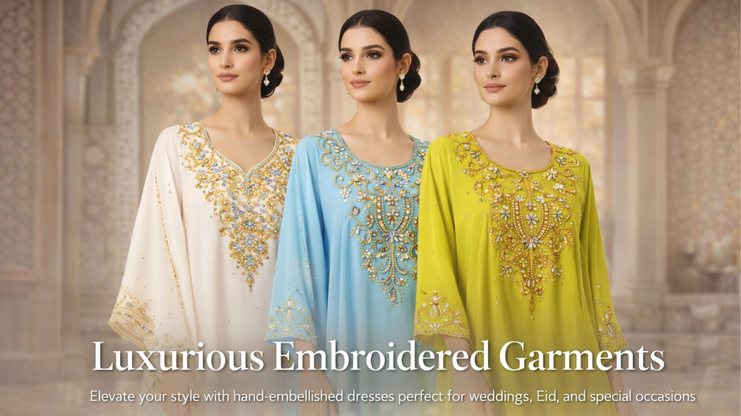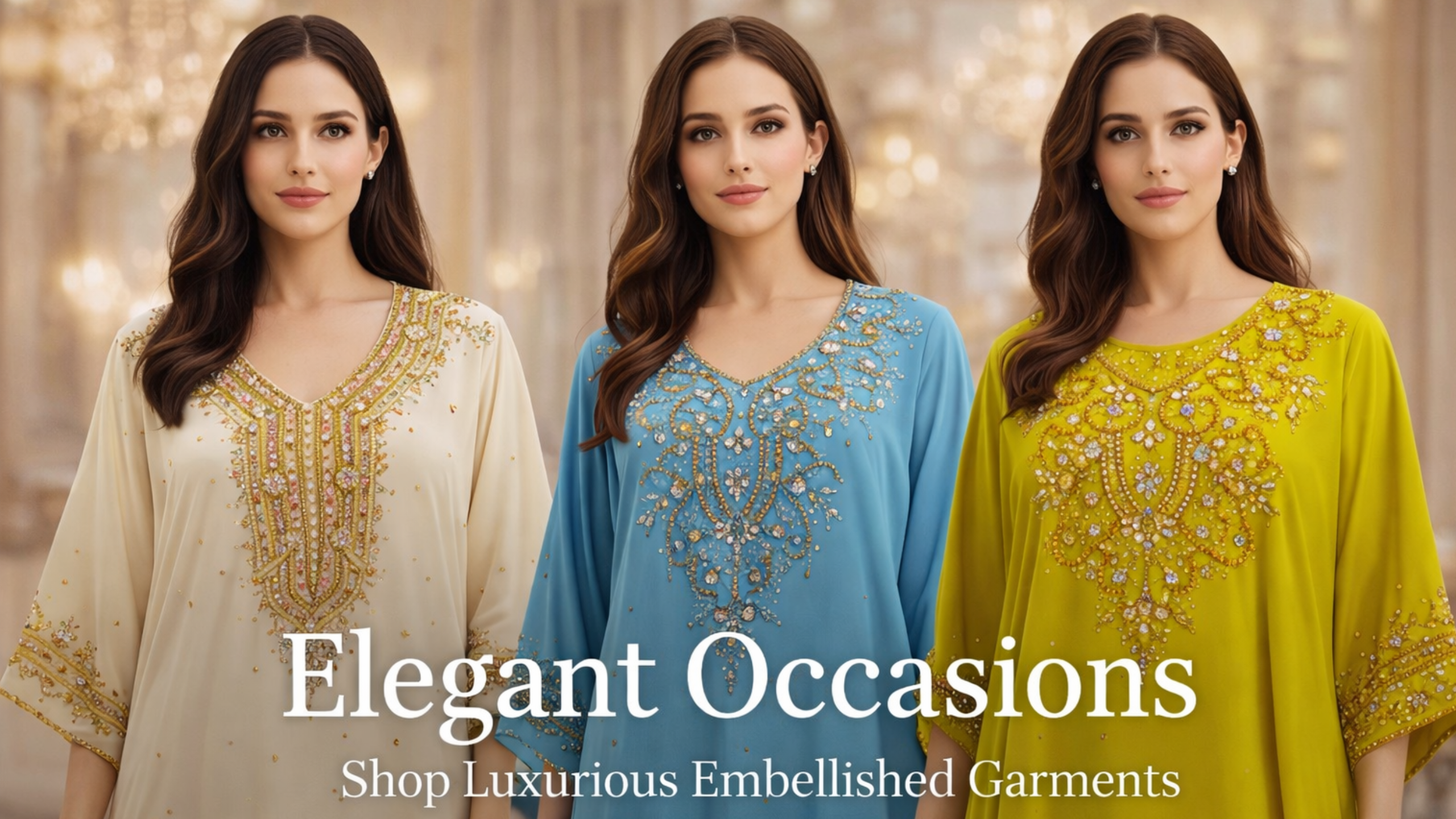 Cream Gold Embellished Kaftan – Elegant Formal Wear